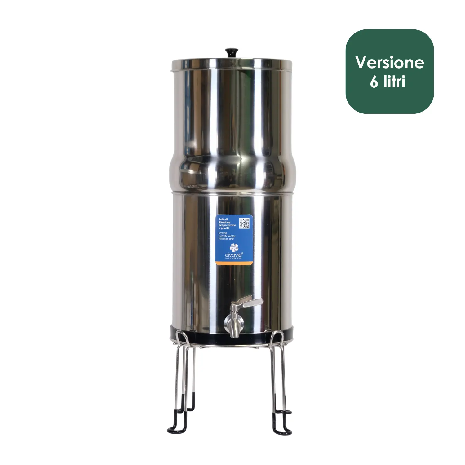 Depuratore acqua portatile a gravità Eivavie® in acciaio inox da 6 litri