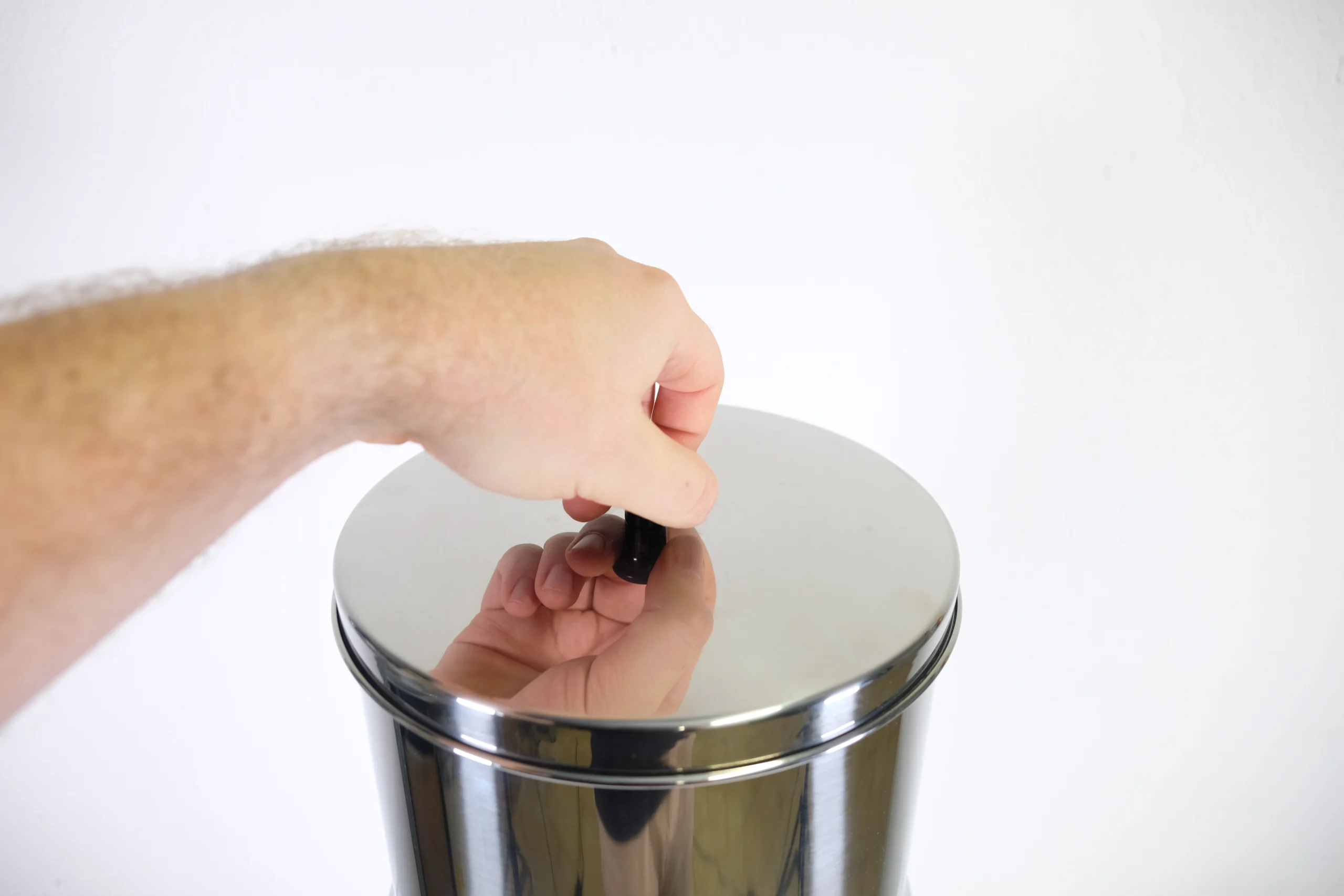 - Dopo la pulizia, rimonta il filtro e riempi il serbatoio superiore con acqua.