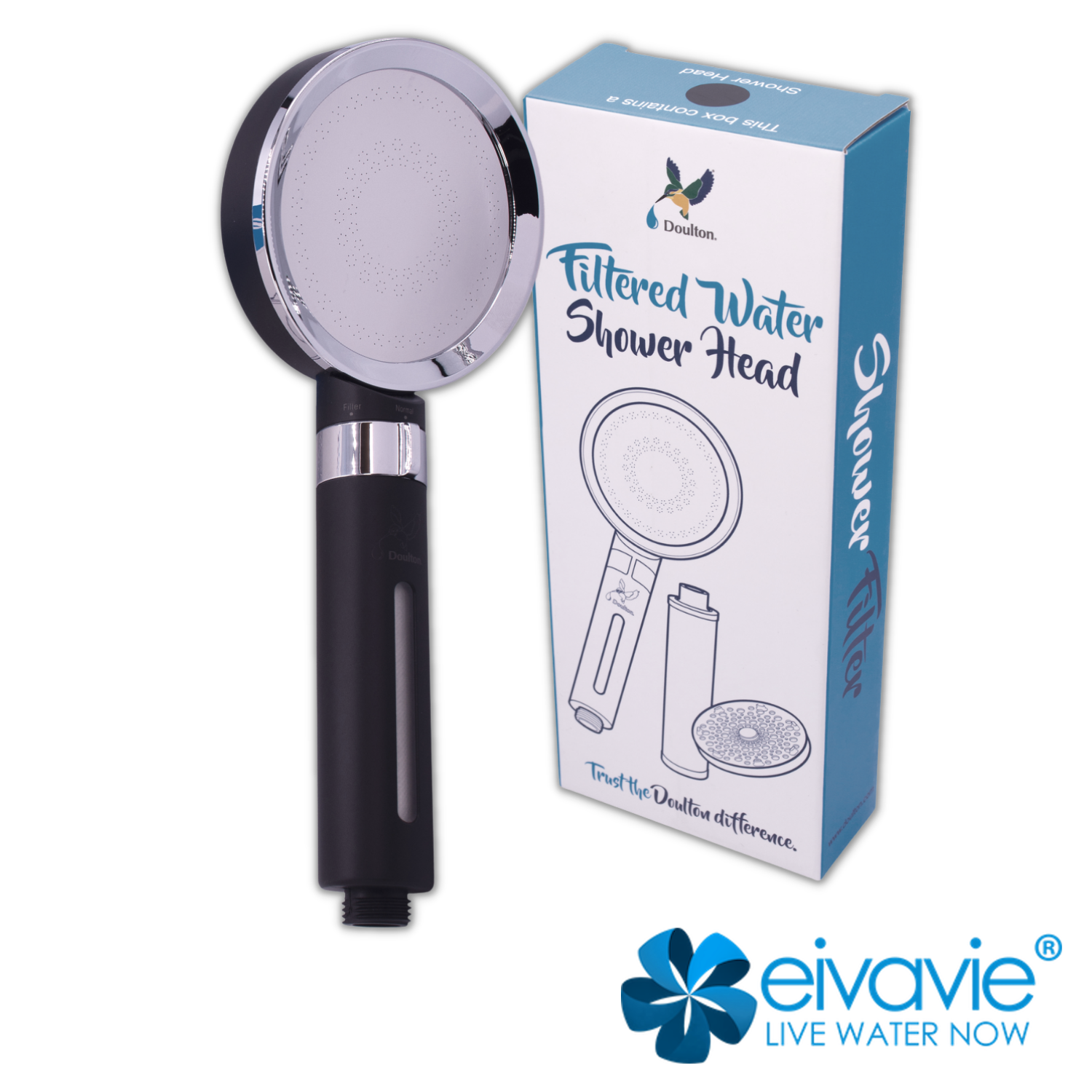 La doccetta con filtro Doulton è un potente sistema a doppia filtrazione. La doccetta filtrante Doulton è in grado di ridurre significativamente il cloro e i sedimenti indesiderati presenti nell'acqua della doccia*, lasciando la pelle morbida e i capelli più setosi. L'elegante finitura nera opaca e il design moderno rendono la doccetta filtrante Doulton in grado di adattarsi perfettamente a qualsiasi bagno.