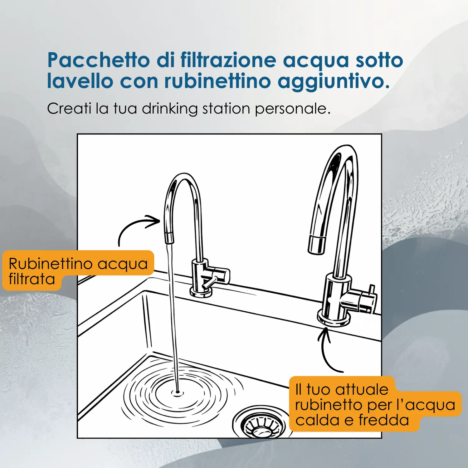 Unità di filtrazione acqua sotto lavello con rubinettino aggiuntivo